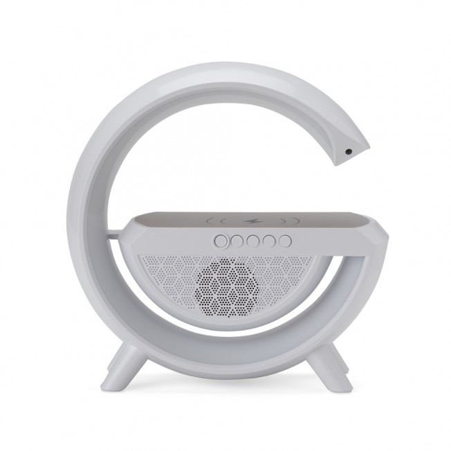 Descrição: Caixa de som com carregador por indução e luminária. Possui 6 modos de iluminação, opera nos modos bluetooth, rádio FM, auxiliar P2, USB e TF (cartão MicroSD). Para desfrutar do carregamento por indução (sem fio) é fundamental que o celular possua a tecnologia QI, o produto só armazena bateria para funcionamento próprio, para funcionar a indução precisa estar conectado a uma fonte de energia.