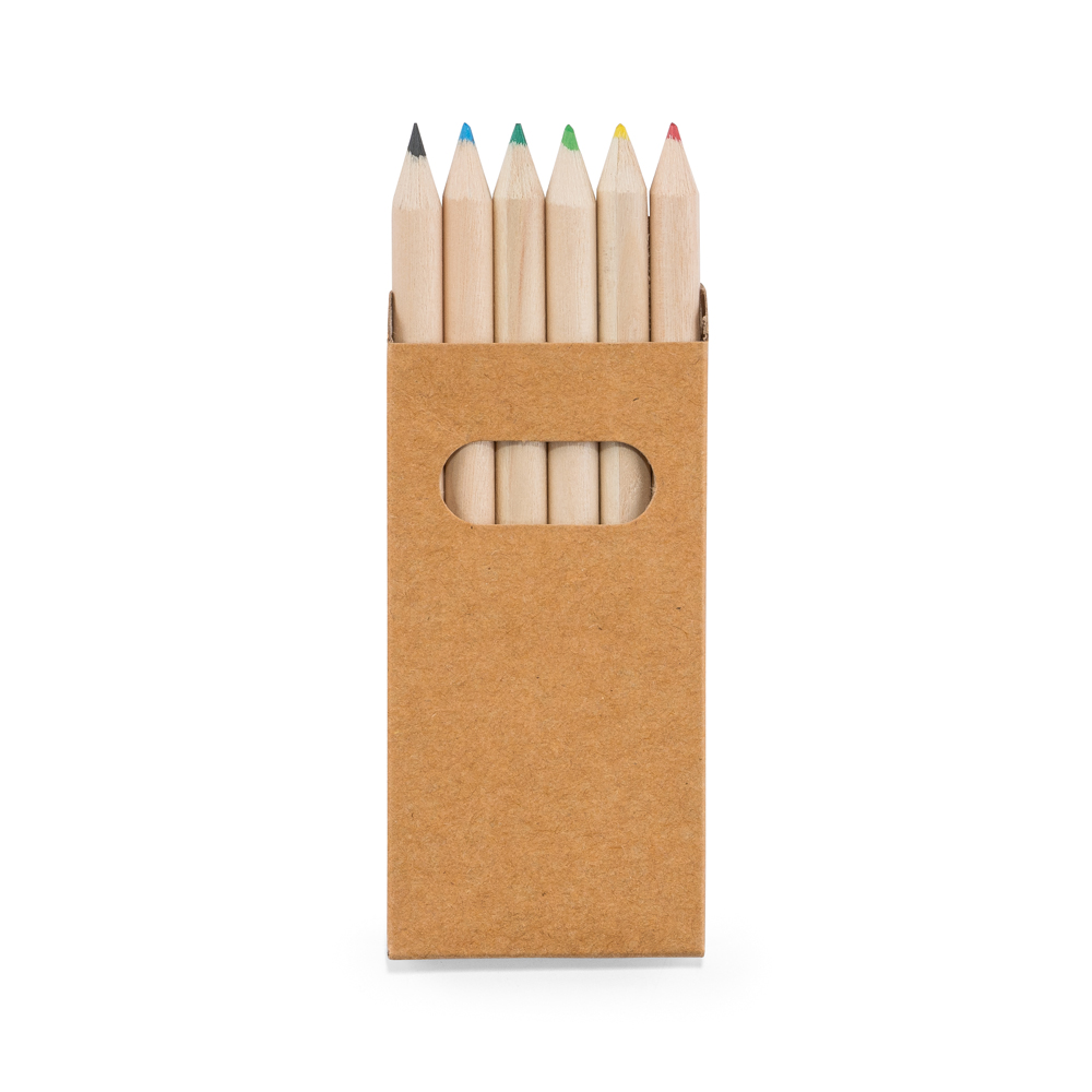 Caixa de cartão com 6 mini lápis de cor. Cartão. 45 x 90 x 9 mm.